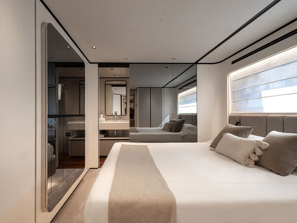 The 28.97-meter-long, 2025 model Ferretti Yachts 940 stands out with its elegant Italian design and spacious flybridge. The airy saloon, surrounded by panoramic glass, is bathed in natural light, while the intelligent deck layout offers comfortable areas for relaxation and socializing. Providing superior accommodation at sea with 5 guest cabins and a crew quarters, the yacht perfectly reflects luxurious maritime life with its powerful performance and modern details.